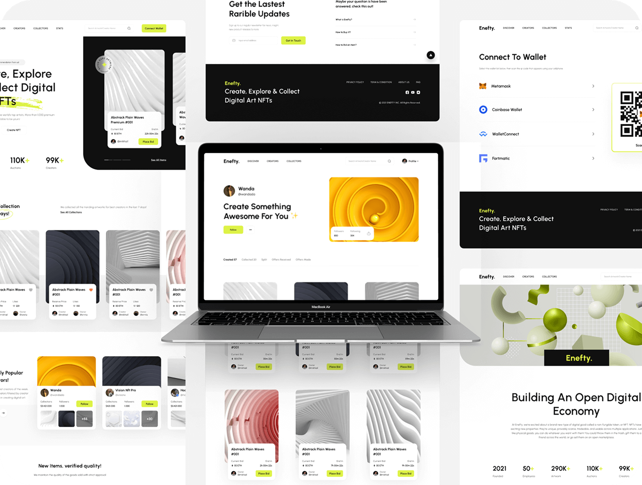 Enefty Concept design and UI kit for an NFT marketplace. The project is a design exploration and does not represent a live or commercially launched product.
