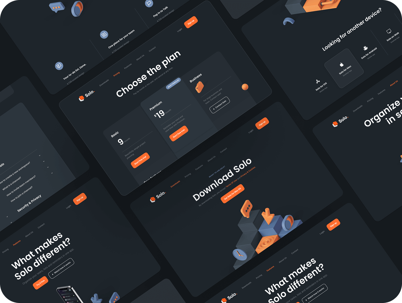 Solo Concept website design created for demonstration and portfolio purposes. The project is based on a UI concept and is not affiliated with a live commercial product.